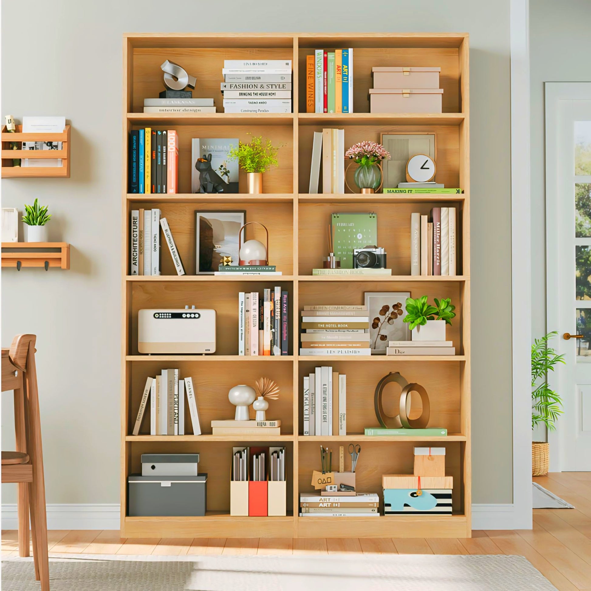 Wooden 6-Tier Double sided Bookshelf