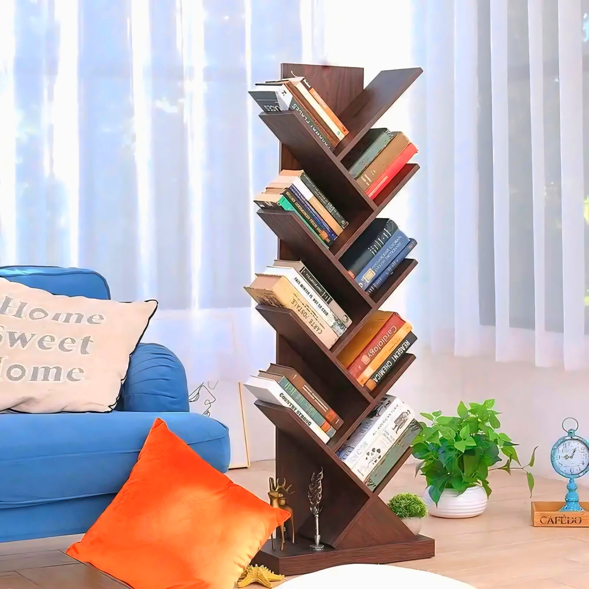 Wooden 9-Tier Tree Shape Book Shelf | Wooden Tree Shape Bookshelf for Office & Home